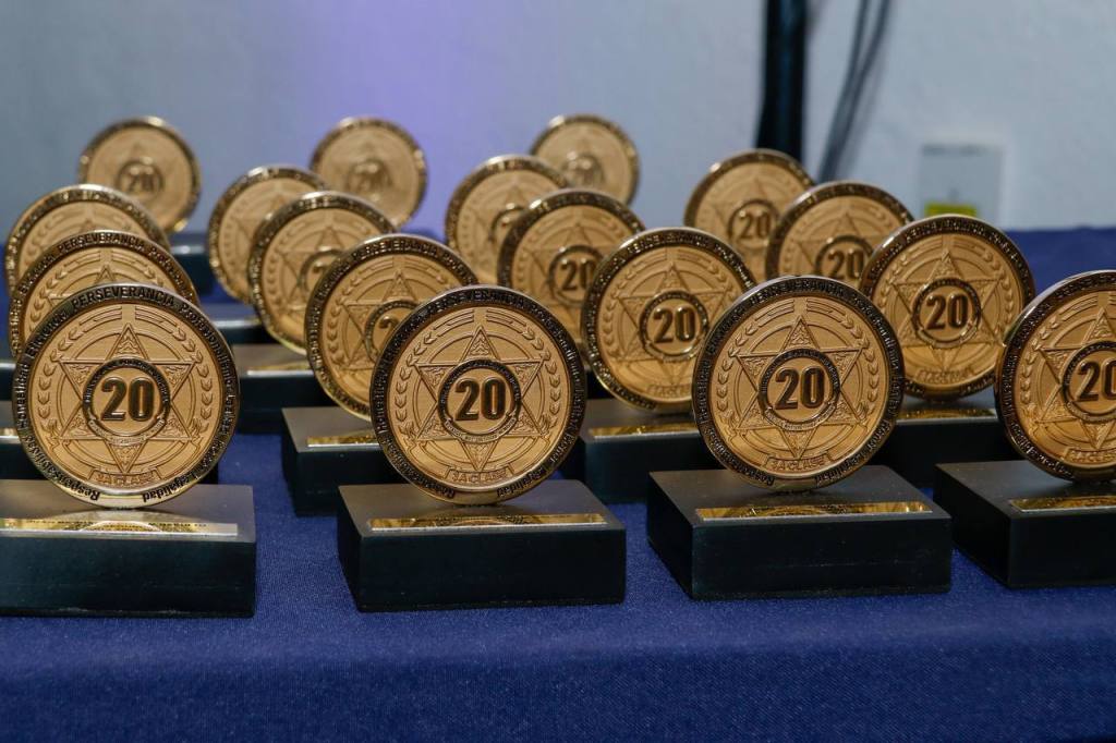 Durante la ceremonia, se entregaron reconocimientos a 43 elementos y nueve integrantes del personal administrativo por 10, 15 y 20 años de servicio, incluyendo, por primera ocasión, estímulos económicos de 5 mil pesos, 7 mil 500 pesos y 10 mil pesos, respectivamente.