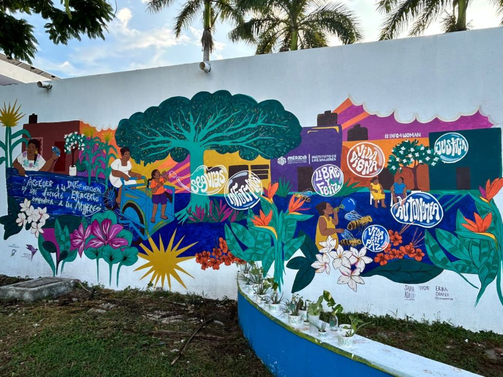 Mérida, Yucatán, miércoles 3 de septiembre de 2025.- El mural “Acceder a la información es un derecho para las mujeres” ya puede admirarse en el Centro Aprende “Sara Mena”, ubicado en la colonia Fidel Velázquez, como parte de la campaña Informando a las Mujeres, Transformando Vidas del Ayuntamiento de Mérida, a través del Instituto de las Mujeres y en colaboración con The Carter Center.