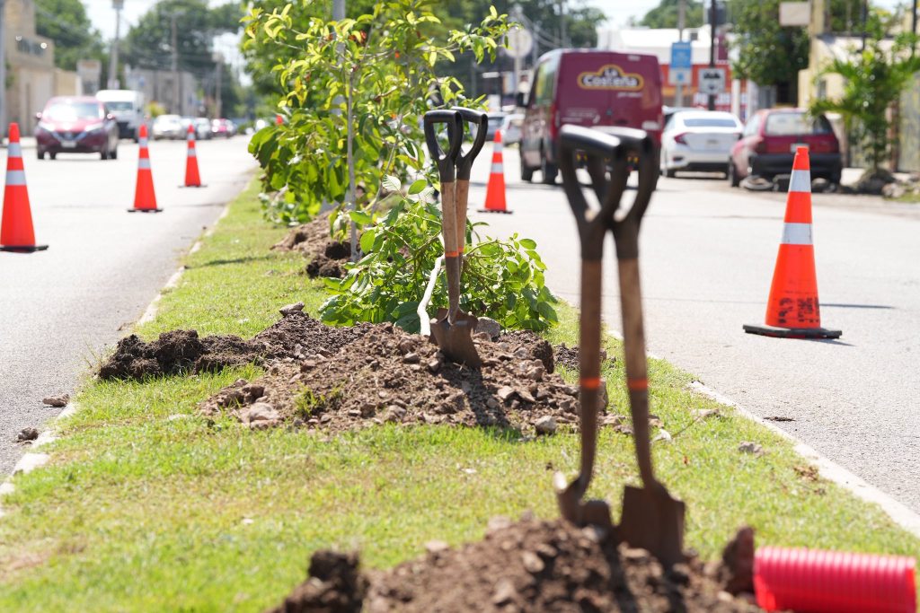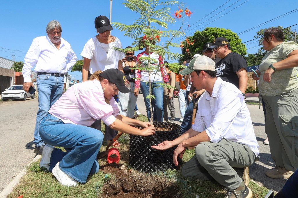 Posteriormente, la alcaldesa encabezó una reforestación en la avenida de la colonia Francisco I. Madero, donde se plantaron 20 árboles endémicos como maculis amarillo y rosa, ciricote, pixoy, takinché, chacsinkín, anacahuita, chum, bocones y zapote.
