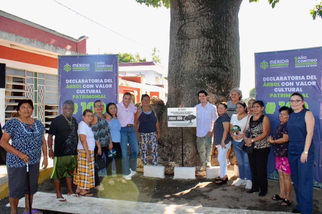 Mérida, Yucatán, jueves 4 de septiembre 2025.- Con la declaratoria número 100 de Árbol con Valor Cultural y Patrimonial de la ciudad a centenaria ceiba en la colonia Mulsay, la presidenta municipal Cecilia Patrón Laviada refrenda su compromiso de construir una Mérida más verde, que protege jurídicamente especies con identidad comunitaria, mientras incrementa su infraestructura arbórea mediante diversos programas.