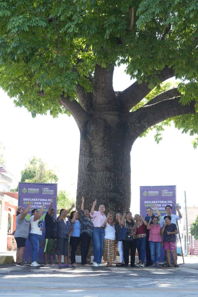 Bajo la sombra de esta emblemática especie ubicada frente a otra ceiba que también fue declarada patrimonio verde, la munícipe dijo que desde que arrancó su administración fue clara en que la Mérida Verde sería eje central en la toma de decisiones en la ciudad para buscar la disminución de temperatura en el municipio.
