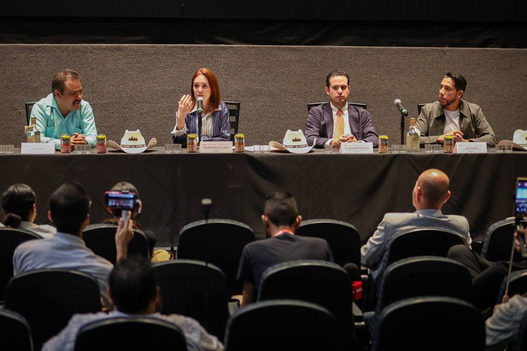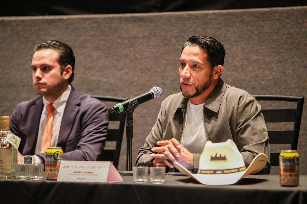 La rueda de prensa contó con la participación de Maricarmen Martínez, Secretaria de Turismo de Nuevo León; Daniel Cigarroa, cofundador del Mezcal Fest Monterrey; y Eduardo Pérez, líder del proyecto Flammam destilado de agave de la UANL, y Carlos Serna, Subsecretario de Fomento Económico de la Secretaría de Economía de Nuevo León.