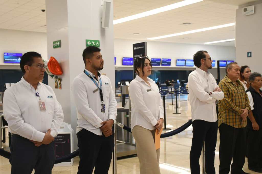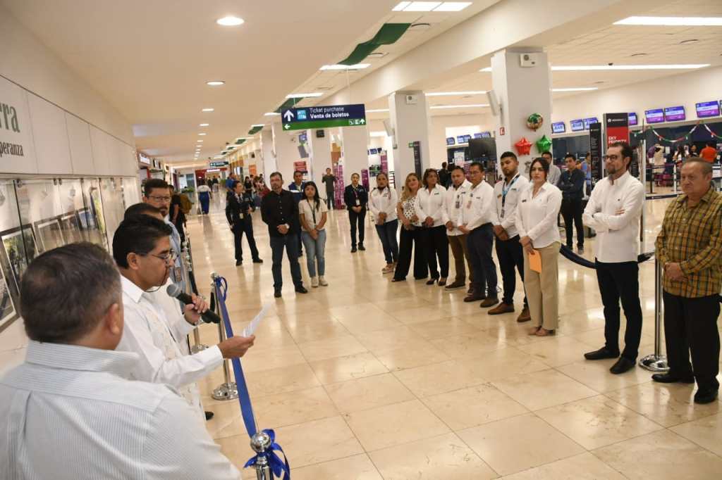 En el corte de listón acompañaron el Lic. Óscar Carrillo Maldonado, Administrador del Aeropuerto de Mérida; el Inspector Marco Aguirre, en representación de la AFAC Mérida; así como integrantes de la comunidad aeroportuaria, quienes se sumaron al inicio de esta importante exposición.