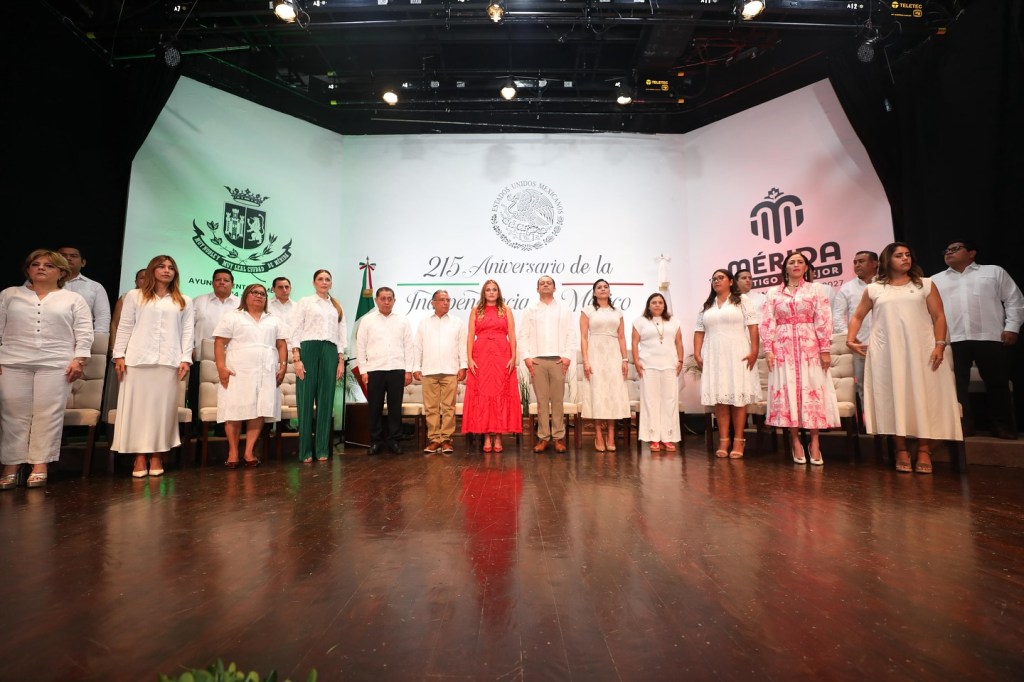 Mérida, Yucatán, lunes 15 de septiembre de 2025.- “Hoy, refrendamos una Mérida que camina junto a México, con distintos rostros, historias y lenguas, pero con un mismo corazón que late fuerte por su gente”, afirmó la presidenta municipal Cecilia Patrón Laviada en sesión solemne de Cabildo con motivo del aniversario número 215 del inicio de la Independencia de México.