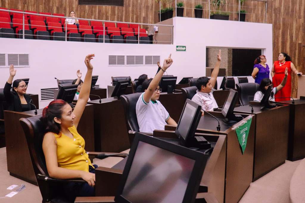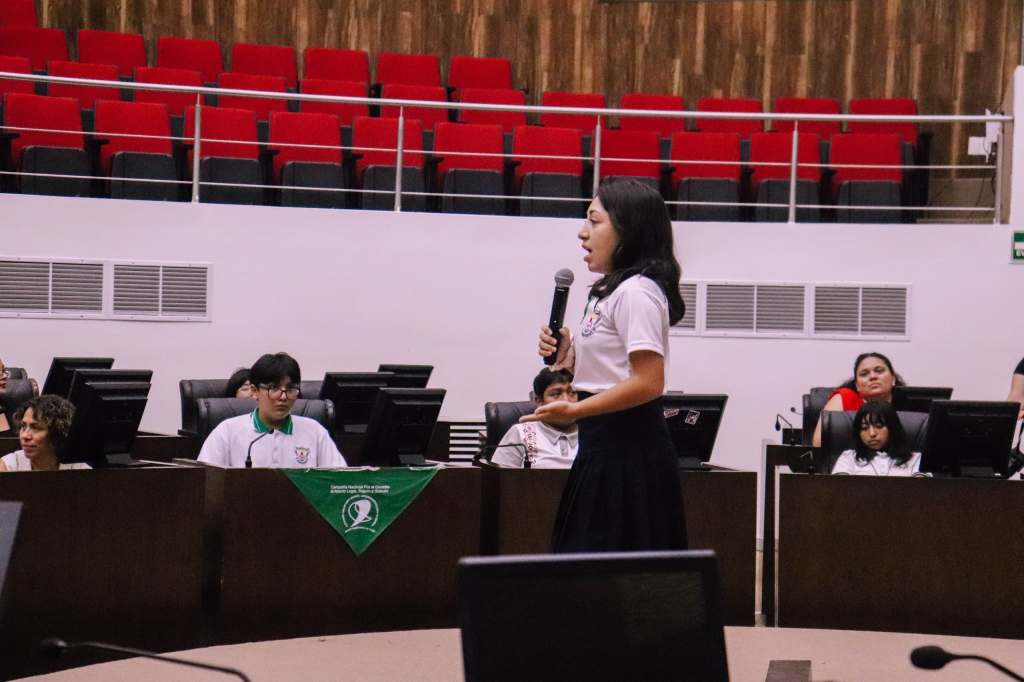 Además, las y los participantes tomaron parte en una actividad simulada de sesión legislativa, donde presentaron propuestas y debatieron temas de interés como los espacios deportivos y la salud mental, fomentando así la práctica democrática.