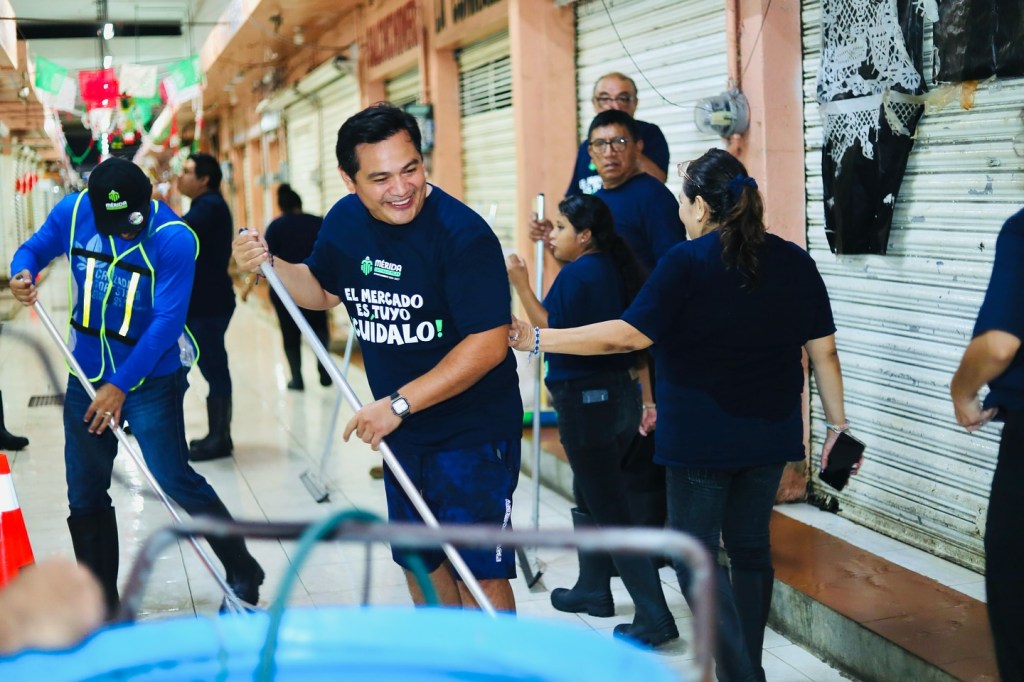 Mérida, Yucatán, viernes 3 de octubre de 2025.- Con la convicción de seguir cuidando los espacios públicos de nuestra ciudad de forma ordenada, limpia y segura, la alcaldesa de Mérida, Cecilia Patrón Laviada, encabezó la jornada de limpieza del Mercado Municipal Lucas de Gálvez, un espacio emblemático que es el corazón del comercio local más importante de la ciudad.