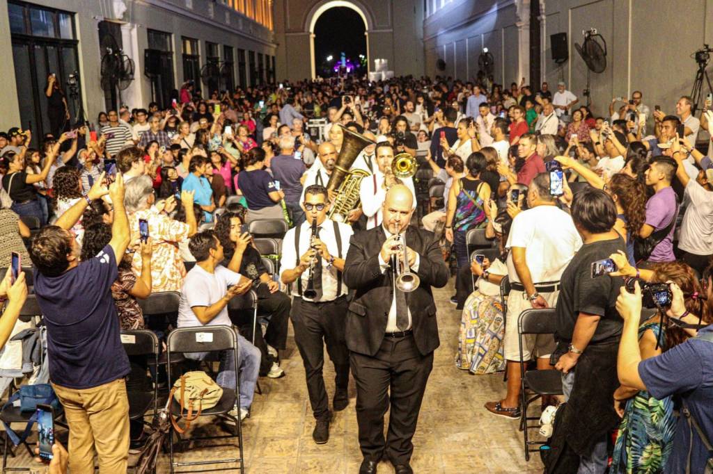 Uno de los momentos más festivos fue el jazz al estilo Nueva Orleans a cargo de la Mérida Hot Jazz Society, que realizó una Marcha Second Line desde la entrada del Pasaje y luego ofreció concierto con ritmos de dixi, y blues que pusieron a bailar a los asistentes.