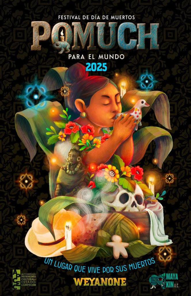 Asimismo, se anunció el Festival de Día de Muertos “Pomuch para el Mundo” 2025, que tendrá lugar el 31 de octubre en el Pueblo Maya de Pomuch, Campeche. Desde las 9:00 de la mañana se realizarán actividades culturales, a las 5:00 de la tarde el Concurso de Altares