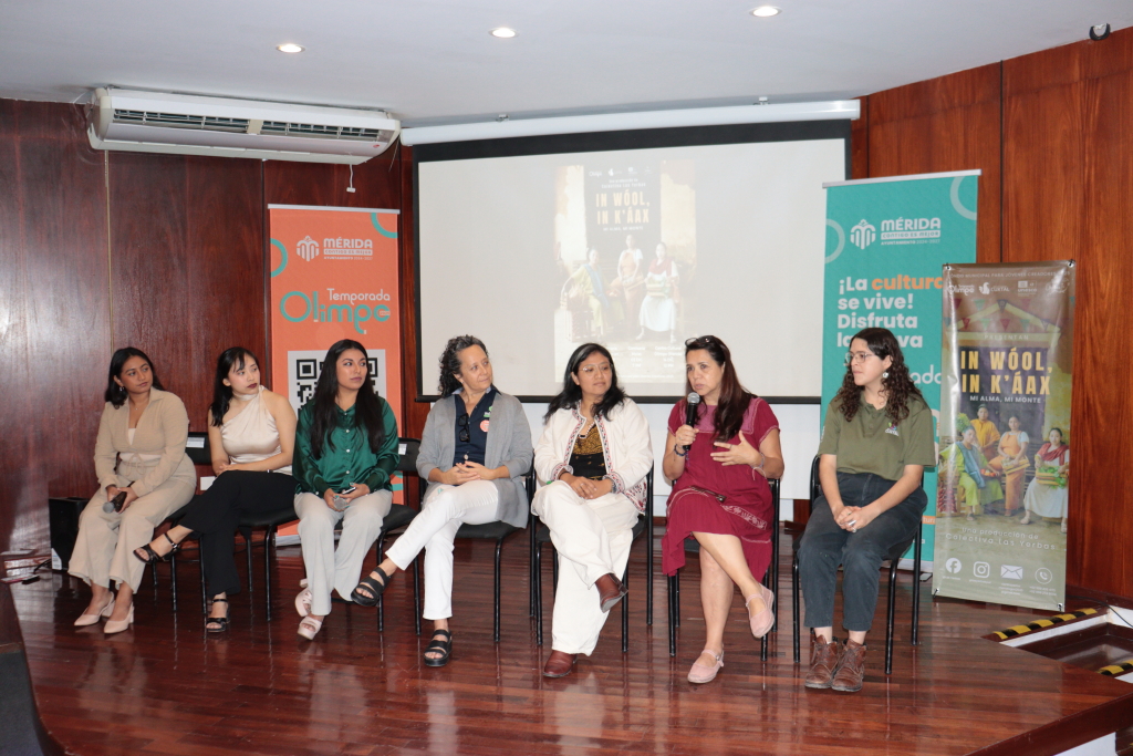 A la presentación también asistieron Mónica Caamal, Esmeralda Nah (artistas escénicas), quienes junto con Christi Uicab protagonizan la obra, Gladiola Chí (escenógrafa) y María José León (logística).