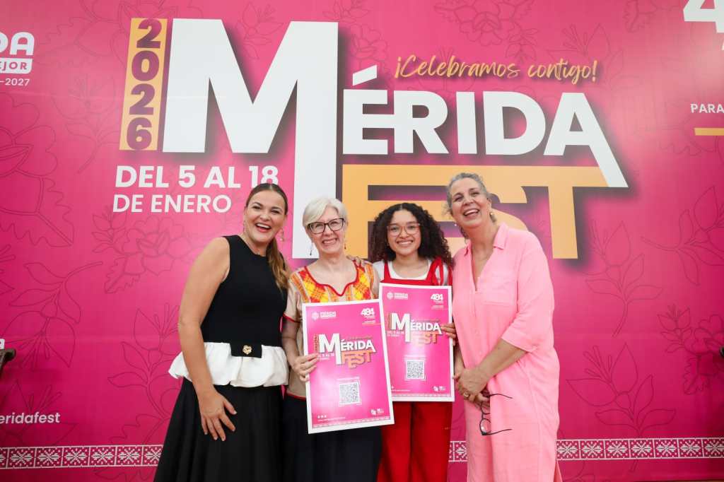Acompañada de la coordinadora general de Justicia Social y Desarrollo Humano, Flora Zapata Mendiolea, y la directora de Identidad y Cultura, Karla Berrón Cámara, así como artistas que formarán parte de la cartelera de celebración, la alcaldesa indicó que Mérida Fest 2026 tendrá 90 proyectos artísticos, 203 actividades y presentaciones con la participación de 909 artistas locales y de ocho países invitados: Cuba, Alemania, Estados Unidos, Argentina, España, Colombia, Bélgica y Uruguay.