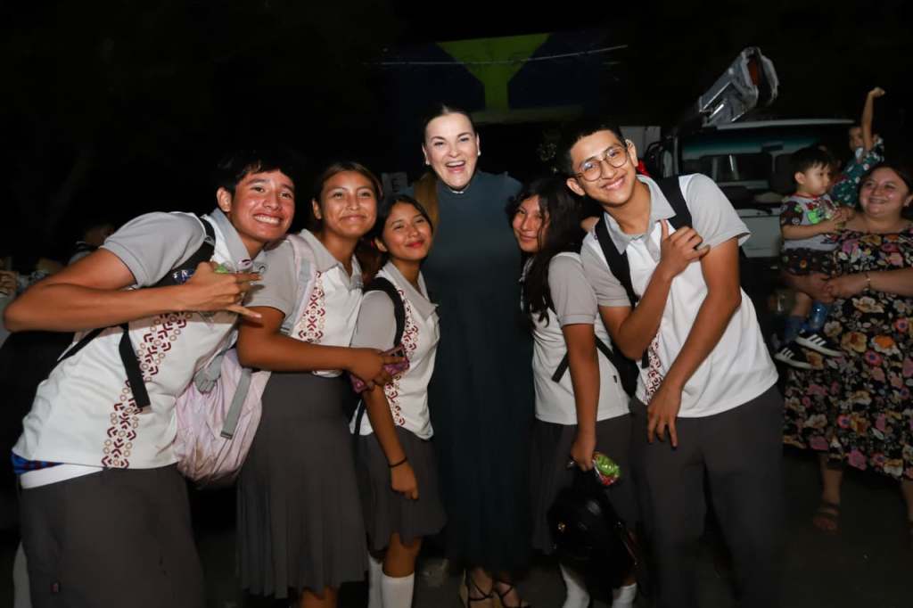 Estuvo acompañada de Arturo León Itzá y Luis Jorge Montalvo Duarte, directores de Desarrollo Social y Combate a la Pobreza y de Servicios Públicos, respectivamente, y la regidora Karla Boehm Calero.