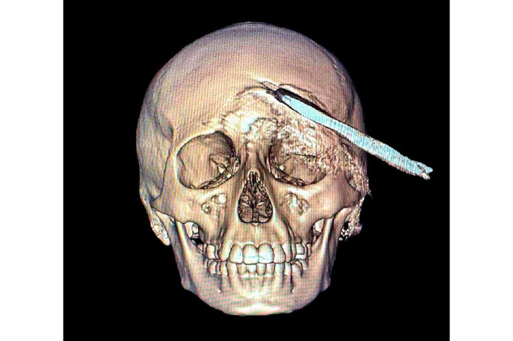 - El joven de 15 años fue sometido a una intervención de cuatro horas, donde sin afectar tejido cerebral, le fue retirado un machete curvo.