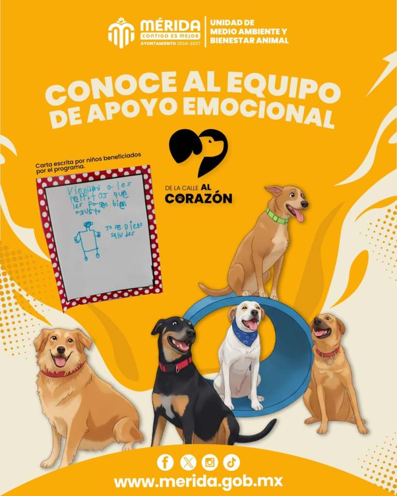 “Estos cinco animalitos, que antes vivían en abandono, hoy son parte de una historia de transformación y cambio por el bienestar animal de Mérida. De la mano del programa ‘De la Calle al Corazón’, pasaron del miedo y la incertidumbre, a convertirse en animales de apoyo emocional que ayudan a niñas, niños, adultos mayores y a quienes más lo necesitan”, expresó.