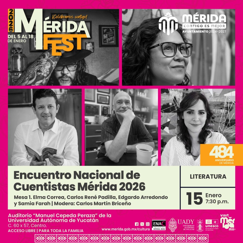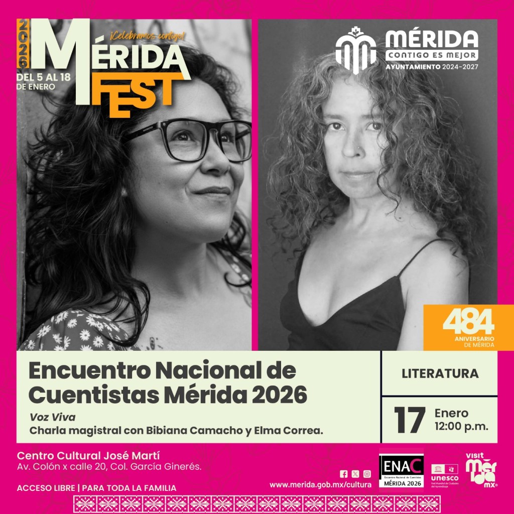Mérida, Yucatán, a 10 de enero de 2026.- La celebración literaria a través del cuento se vivirá en el Mérida Fest 2026 con el Encuentro Nacional de Cuentistas ENAC-Mérida, que el 15 y 16 de enero reunirá a representantes del género nacionales y del sureste del país.