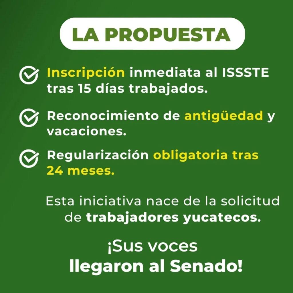 El legislador del Partido Verde explicó que esta problemática llegó a su oficina mediante una carta enviada por personal suplente del Issste en Yucatán, en la que se describe la falta de seguridad social, antigüedad, vacaciones y estabilidad laboral, así como la incertidumbre permanente sobre la continuidad del empleo.